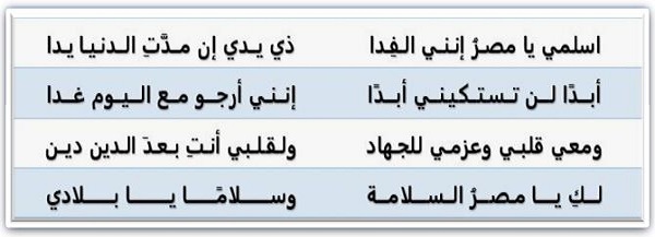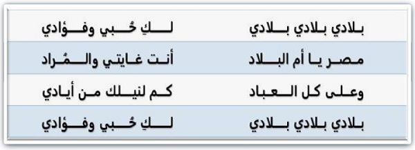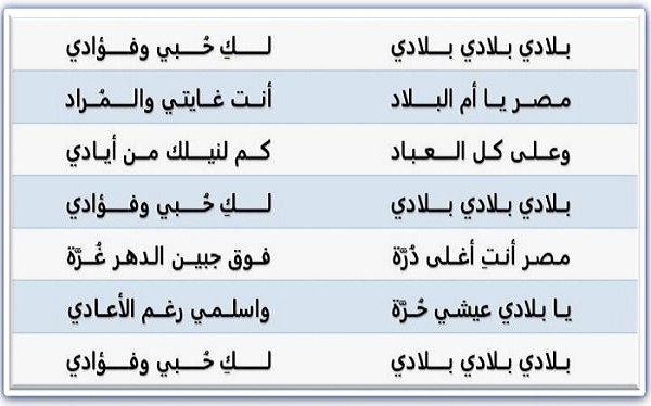 الجزء الأول من النشيد الوطني المصري "بلادي بلادي":