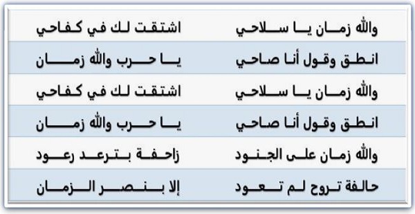 كلمات نشيد والله زمان يا سلاحي: