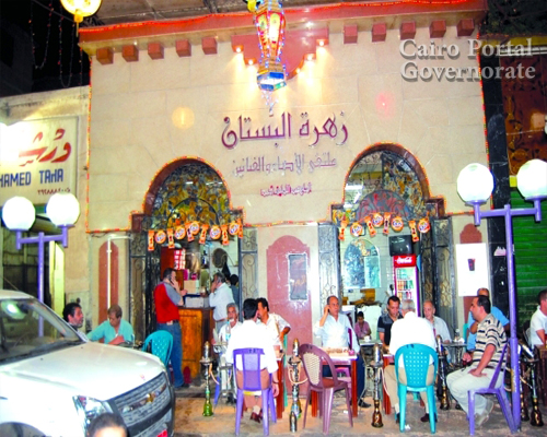 cafes, including Zahret El-Bustan Café, which features a prominent sign