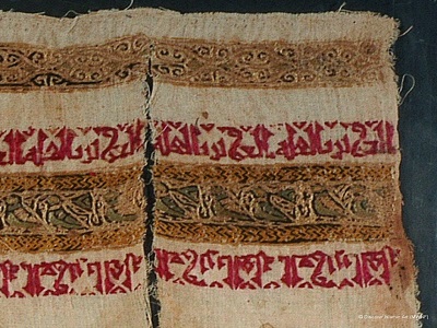 قاعة العصر الإسلامي بتنوع قطع الأنسجة التي كتبت بالخط الكوفي وتحتوي على بعض
