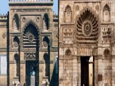 مع إضافة بعض الرموز المسيحية، حيث يتميز مدخل الجامع بالعقد المعشق الذي يعلوه