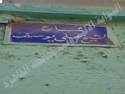 أطلق على الشارع أيضا أسم " الشيخ علي يوسف" أحد الرواد الأوائل للصحافة المصرية، من مواليد محافظة سوهاج عام 1863م، أنشأ جريدة المؤيد التي كانت تهدف لمحاربة الاستعمار، ومن أبرز كتابها الشيخ محمد عبده، والزعيم سعد زغلول، وقاسم أمين وغيرهم...، وارتبط اسم علي يوسف بالقضايا فذاع أسمه، احداها عرفت بقضية "التلغراف" فقد نشرت صحيفة " المؤيد" صورة تلغراف مرسل من سردار الجيش المصري في السودان إلى وزير الحربية في مصر عن الحملة العسكرية في دنقلة، وكان التلغراف سريا للغاية، مما أثار غضب الانجليز وقدموا علي يوسف للمحاكمة، ولكن المحكمة برأته. أما القضية الأخرى التي كانت سببا في ذيوع اسم علي يوسف بين عامة الناس، قضية زواجه بالسيدة صفية بنت السادات، وبعد خطبتها ماطل والدها في إتمام الزفاف، حيث انتبه أنه غير لائق أن يزوج أبنته سليلة الأشراف الساداتية إلى شاب يعمل "جورنالجيا" فقد كانت الصحافة مهنه لا تحظى بالاحترام الكافي، ولكن بعد مساعدة نقيب الاشراف، عقد قرانه عليها سرا، وعندما علم والدها بهذا الأمر، اندفع هائجا ورفع قضية للتفريق بين الزوجين لعدم التكافؤ، بالفعل نجح المحامي اللامع "محمد عز العرب" في التفريق بين الزوجين وفسخ عقد القران، وقد عاد الزوجين مرة أخرى عام 1905م نظرا لتغيير وجهة نظر المجتمع لمهنة الصحافة.