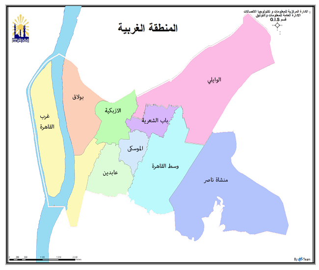 تتكون من عدد 9 أحياء هي : حي منشأة ناصر , حي الوايلي ، حي وسط ، حي بولاق ، حي غرب ، حي عابدين ، حي الازبكية ، حي الموسكي ، حي باب الشعرية.