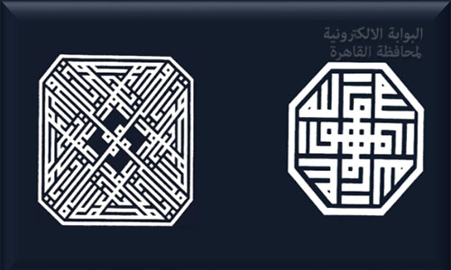 اليسار كتابة يا محمد تكررت 16 مرة لتعطي شكلاً هندسياً مربعاً