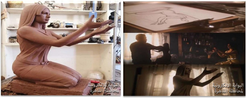 النحات أحمد موسى اثناء تصميمه للتمثال
