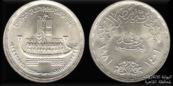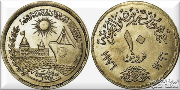 السادات، صدرت عدد من العملات منها عملة فضية تذكارية بقيمة 10 قروش بمناسبة إعادة