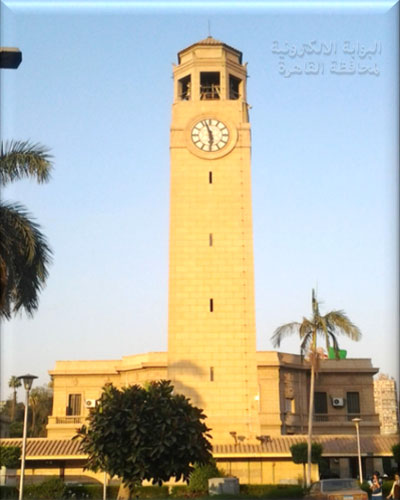 تعتبر ساعة جامعة القاهرة هى أحد المعالم الهامة داخل الجامعة، خاصة وأنه تم إنشاءها في عام 1937، وتعد الساعة أقدم وأشهر الساعات على مستوى العالم، وكان الغرض منها في ذلك الوقت أن تكون بديلاً للجرس في بدء وانتهاء المحاضرات؛ ولهذا نجد كل المدرجات الكبيرة مزودة بساعات صغيرة مماثلة للساعة الكبيرة الأم، فالساعة تدق 4 مرات خلال الساعة كل 15 دقيقة، وتم تركيب الساعة داخل البرج الذي يصل ارتفاعه إلى 42 متراً ويوجد بداخل برج الساعة توقيع التاريخ الذى طُبع على أجراس الساعة في إشارة إلى صاحب السمو الملكي الملك فاروق آنذاك، وكذلك بعض الإضافات الخاصة مثل حقيبة الأدوات، التي تستخدم في إصلاح الأعطال التي قد تشهدها الساعة، وتدق على ساعة جامعة القاهرة نشرات الأخبار في كل وكالات الأنباء المصرية والإذاعة المصرية.