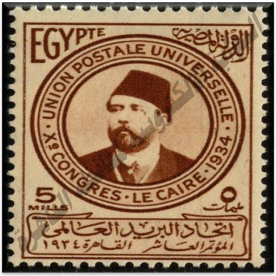 البريد العالمي في القاهرة 1934، ويظهر عليه صورة لوجه الملك فؤاد.