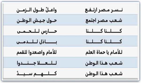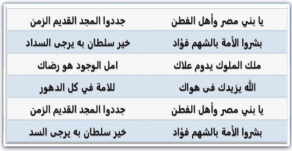 الجزء الأول من النشيد الوطني المصري "بلادي بلادي":